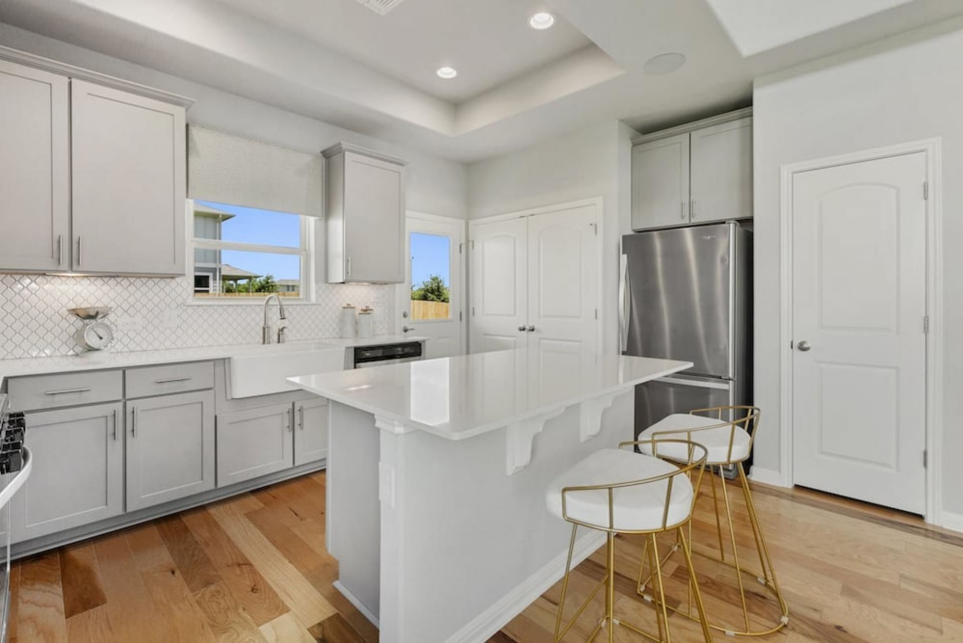 Modern 3 bed, 2.5 bath available in June - the layout provides an airy feel with high ceilings and stacked windows. The living and dining areas are open with a half bath downstairs for convenience. The first floor Primary offers an expansive bathroom with dual vanity and walk-in closet. A bonus space upstairs acts as a second living area, game room or home office. Each bedroom features a walk-in closet for ample storage, and the backyard features a large covered patio. Enjoy easy access to Moontower, Armadillo Den, HEB, Southpark Meadows, Mary Moore Searight Park, and a vibrant array of attractions.