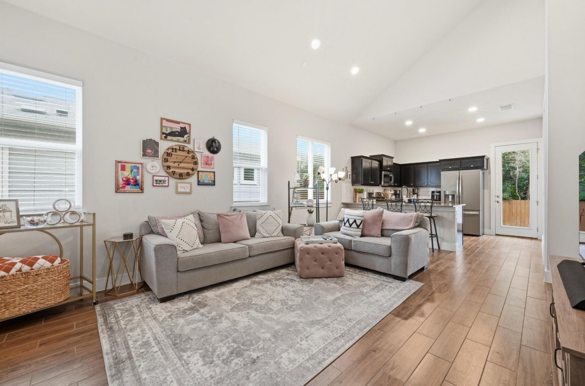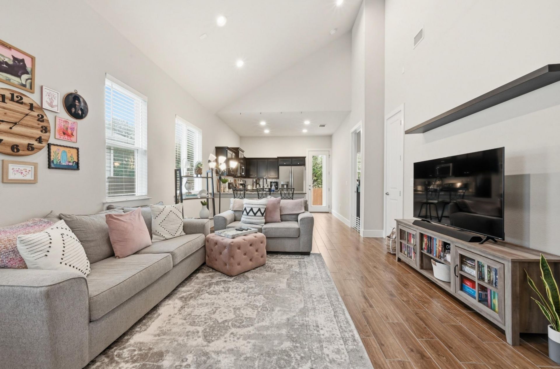 Charming and modern home located in the Verrado community. As soon as you walk in you are greeted by high vaulted ceilings and natural light! The 8 foot doors and tall ceilings make this 2 bedroom/2 bathroom home feel very spacious. The open floor plan features wood-like tile, granite countertops with bar seating for entertaining, and stainless steel appliances! The kitchen and living room have recessed lighting as well. The primary bedroom has overhead picture windows for additional natural light. The community has a dog park and is within minutes to the South Park Meadows shopping and entertainment district. It is a very easy and quick access to IH-35. This home has a tankless water heater as well. Many neighbors can be seen walking through the neighborhood throughout the day. Don't wait to see this home!