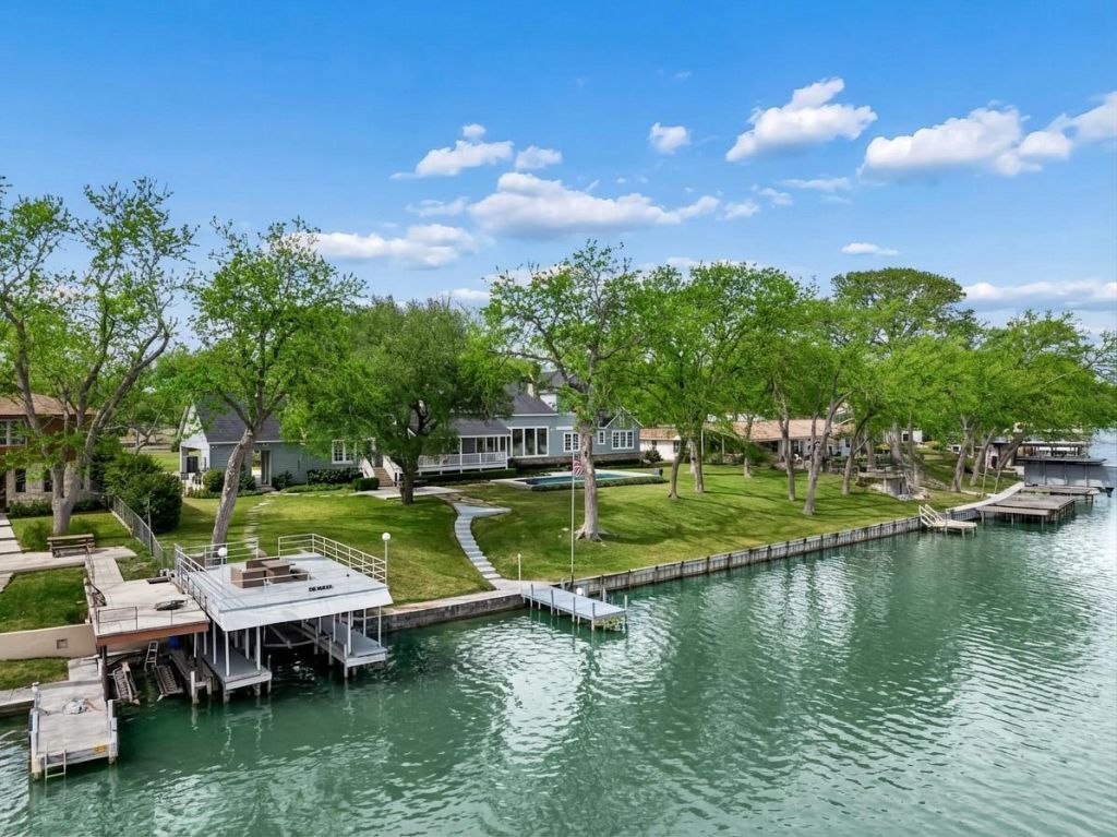 The wait is over?Lake McQueeneys new dam is complete, the lake is rising, and families are preparing to enjoy a full season of boating, swimming, and waterfront living once again. With six private suites, this waterfront property delivers the space, shoreline, and setup for unforgettable lake weekends from day one. The waterfront steals the show. 202 feet of east facing Lake McQueeney shoreline stretch across 1.23 beautifully maintained acres, creating wide, uninterrupted water views and room to truly spread out. The concrete dock with boat lift and upper deck is built for full lake days. Concrete steps lead straight to the shoreline, while an additional dock and expansive outdoor areas keep the action moving from swimming and fishing to tying up after a cruise. The backyard was designed for full-blown lake days. A private in-ground pool, sprawling decks, and multiple outdoor hangout zones create the perfect hang out spot. Inside, the home keeps the water in view. The main living area features vaulted ceilings with exposed beams, oversized windows, and a dramatic reclaimed-stone fireplace, filling the space with natural light and lake scenery. A built-in wet bar makes hosting effortless when everyone rolls in from the dock. The chefs kitchen rises to the occasion with marble countertops, oversized island with prep sink, custom cabinetry, double dishwashers, and a five-burner gas cooktop?ready for everything from quick lake breakfasts to big gathering dinners. Lake McQueeney is making its comeback. This property is ready to make the most of it.