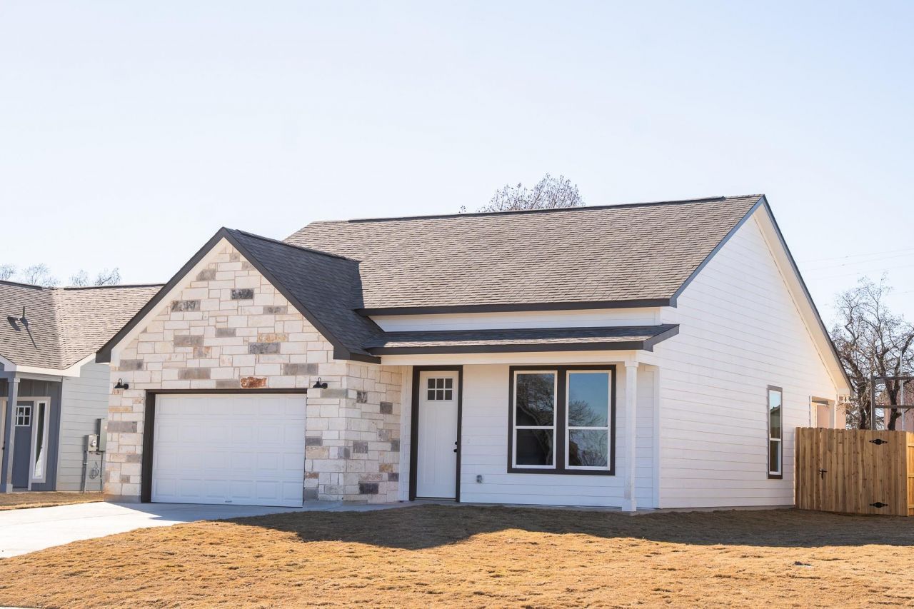 Welcome to this beautifully designed new construction home located in the charming and historic town of Smithville, Texas. Offering approximately 1,532 square feet of living space, this thoughtfully designed residence features an open-concept floor plan perfect for modern living and entertaining.The spacious living area flows seamlessly into the kitchen and dining space, creating a warm and functional layout ideal for gatherings and everyday comfort. The home includes quality craftsmanship throughout with well-planned living spaces that maximize both functionality and style.Enjoy outdoor relaxation on the covered front porch, perfect for morning coffee or evening unwinding. The property also features an attached 2 car garage, providing ample space for parking, storage, or hobby use.Located in a desirable Smithville neighborhood, this home offers convenient access to local shopping, dining, schools, and outdoor recreation, including the scenic Colorado River and nearby parks. Smithville is known for its small-town charm while remaining just a short commute to Bastrop, Austin, and surrounding Central Texas areas.This home is ideal for first-time buyers, families, or anyone looking to enjoy peaceful living with modern conveniences. Dont miss the opportunity to own a beautiful home in one of Central Texas most welcoming communities.